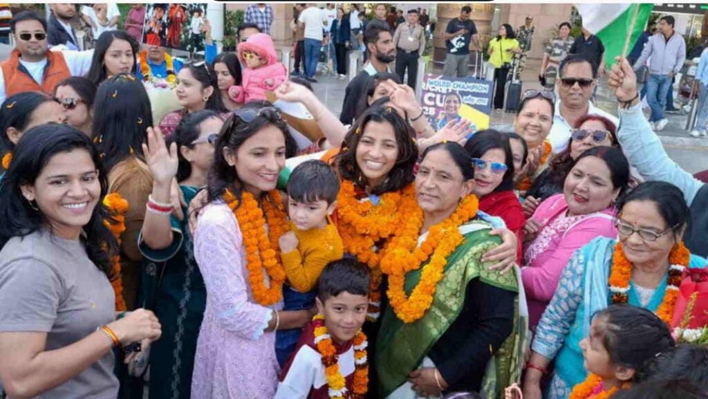 भारत के महिला क्रिकेट विश्व कप जीतने के बाद पहली बार देहरादून एयरपोर्ट पहुंची ऑल राउंडर स्नेह राणा का देहरादून एयरपोर्ट पर ढोल नगाड़ों केसाथ स्वागत किया। स्नेह राणा सनौला, देहरादून की रहने वाली हैं। भारतीय महिला क्रिकेट टीम में ऑलराउंडर स्नेहा राणा ने देहरादून एयरपोर्ट परकहा कि टीम इंडिया की कड़ी मेहनत से विश्व कप जीत पाए हैं। प्रधानमंत्री और राष्ट्रपति से भी टीम के साथ उन्होंने मुलाकात की है। उनके साथ काफीअच्छा अनुभव उनका रहा है। उन्होंने टीम का हौसला बढ़ाया। वहीं राज्य स्थापना दिवस पर वह मुख्यमंत्री और प्रधानमंत्री से भी मिल सकती हैं।