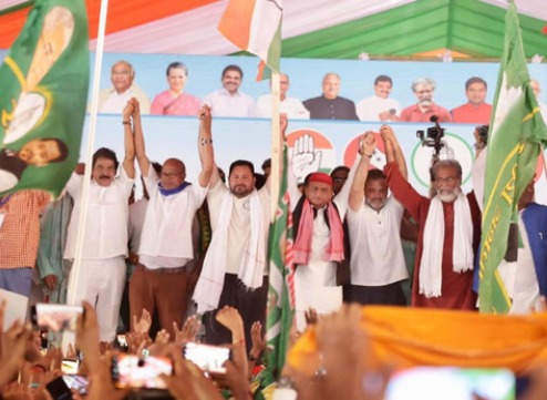 सतर्क नहीं रहेंगे तो यह मोदी और शाह आपको डुबा देंगे आजादी के बाद जो वोट का अधिकार दिलाया गया, उसे खोना नहीं यह महात्मा गांधी, आंबेडकर और नेहरु जी ने अधिकार दिया है सीएम नीतीश कुमार पर हमला करते हुए खरगे ने कहा कि यह आरएसएस वाले आपको कचरा में जाकरफेकेंगे खरगे ने पुलिस को राहुल गांधी की यात्रा रोकने के लिए भी आड़े हाथ लिया उन्होंने नारा लगवाया- मोदी को हटाओ. बिहार विधानसभा मेंविपक्ष के नेता तेजस्वी यादव ने राहुल गांधी, मल्लिकार्जुन खरगे के बाद हेमंत सोरेन अभिवादन करते हुए अपना संबोधन शुरू किया और मुकेश सहनीऔर क्रिकेटर युसुफ पठान को बड़ा भाई कहकर संबोधित किया. आदाब, प्रणाम और सलाम करते हुए तेजस्वी ने कहा कि यह बिहार की धरती है, लोकतंत्र की जननी है यह कुछ, कुछ भी नहीं दो भाजपाई लोग चुनाव आयोग के साथ मिलकर लोकतंत्र की धरती से लोकतंत्र को खत्म कर देनाचाहते हैं लोकतंत्र चाहिए या राजतंत्र चाहिए? यह लोग चाहते हैं कि बिहारी लोग को ठग लें. फैक्टरी लगाएंगे गुजरात में और वोट चाहिए बिहार में! हमारे मुख्यमंत्री इतनी बार पलटी मारे हैं कि इनका दिमाग चकरा गया है.