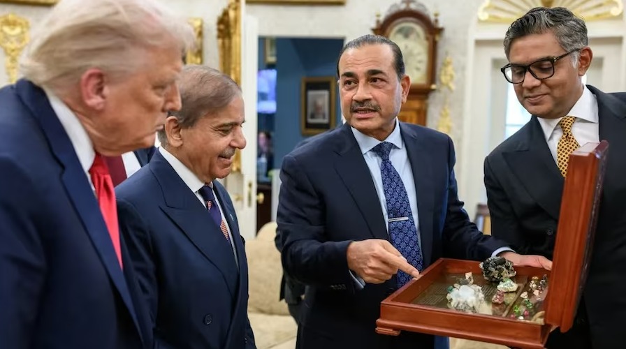 व्हाइट हाउस में अमेरिकी राष्ट्रपति डोनाल्ड ट्रंप के साथ पाकिस्तानी प्रधानमंत्री शहबाज शरीफ और आर्मी चीफ आसिम मुनीर की तस्वीरों ने पूरी दुनियामें सुर्खियां बंटोरी. अब व्हाइट हाउस की तरफ से जारी प्रेस रिलीज में एक नई तस्वीर सामने आई है, इसमें आसिम मुनीर, राष्ट्रपति ट्रंप को पाकिस्तानके रेयर अर्थ मिनरल्स का एक सैंपल दिखाते नजर आ रहे हैं. वहीं, बीच में पाकिस्तानी पीएम शहबाज शरीफ भी खड़े दिख रहे हैं. ‘टीओआई’ कीरिपोर्ट के मुताबिक ट्रंप के साथ शाहबाज शरीफ और आसिम मुनीर की बैठक से जुड़ी व्हाइट हाउस की दस से ज्यादा फोटो वाली पिक्चर गैलरी में इसतस्वीर को भी दिखाया गया है. इसमें दोनों पाकिस्तानी ट्रंप को एक खुला हुआ लकड़ी का बॉक्स दिखा रहे हैं, जिसमें रंग-बिरंगे पत्थर रखे हैं. दो बड़ेपत्थर बास्टेनजाइट और मोनाजाइट के लग रहे हैं, जिनमें आमतौर पर रेयर अर्थ मिनरल्स जैसे सेरियम, लैंथेनम और नियोडिमियम होते हैं. ृपाकिस्तानलंबे समय से अपने विशाल तेल, गैस और खनिज संपदा का बखान करता रहा है, जिनमें से कुछ दुर्लभ रेयर अर्थ बलूचिस्तान और खैबर-पख्तूनख्वा केइलाके में पाए जाते हैं.