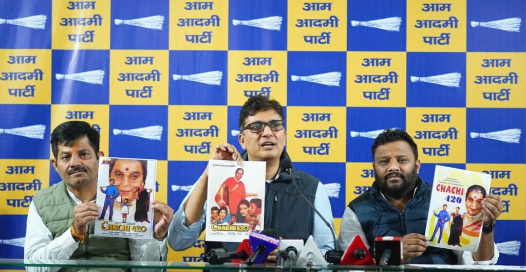 The Aam Aadmi Party (AAP) has blasted the BJP’s “Chachi 420” government for pulling off its boldest ‘credit-chori’ (credit theft) yet, hijacking a Delhi High Court order and passing it off as Chief Minister Rekha Gupta’s achievement. AAP’s Delhi State President Saurabh Bharadwaj said the BJP didn’t just hide the court’s ruling on electricity connections for Municipal Corporation of Delhi (MCD)’s booked properties, it staged a full-blown victory parade, with BJP leaders, including Manoj Tiwari and Virendra Sachdeva, congratulating Rekha Gupta for a decision she never made. Addressing a press conference, AAP Delhi unit president Saurabh Bharadwaj stated, “The BJP government is setting new records of ‘farziwada’ (fraud) every day. The BJP government is committing fraud with pollution data and with the cleaning of the Yamuna. When they get caught, they say things can’t be fixed so quickly. If they cannot fix it quickly then why did they claim they would? Arvind Kejriwal’s government purchased buses and CM Rekha Gupta now wants to take credit for it. Arvind Kejriwal built Mohalla Clinics and dispensaries and the BJP CM wants to replace the boards and take the credit.” Highlighting how the BJP has crossed every limit, Saurabh Bharadwaj elaborated, “While stealing the credit of the Aam Aadmi Party government, the BJP government has gone so far in its fraud that it is now trying to steal credit for the courts’ work as well. The BJP government is not just cheating the people of Delhi, now the CM of Delhi, Rekha Gupta, is doing fraud even with the court.” Waving the posters of the film ‘Chachi 420’, he said that CM Rekha Gupta has even committed fraud with the Delhi High Court. “The BJP believes no one will notice their fraud. On Tuesday, all newspapers published a wrongly printed report quoting CM Rekha Gupta that electricity connections would now be allowed even in booked properties. It was reported that the MCD used to stop electricity connections in properties booked for unauthorised construction and that her government has now decided these properties will again receive electricity connections,” shared the senior AAP leader.