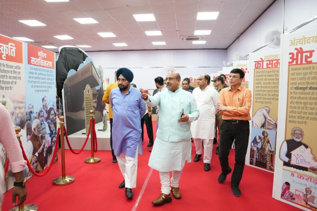 The exhibition stands as a powerful reflection of the life, vision, and work of our Hon’ble Prime Minister on his 75th birthday. It not only narrates the inspiring journey of Shri Narendra Modi—from his humble beginnings to his leadership as a global statesman—but also showcases the transformative initiatives he has championed for nation-building. From Atmanirbhar Bharat that ignited the spirit of self-reliance, to Digital India that strengthened technological empowerment, from Swachh Bharat Abhiyan that became a people’s movement, to Vocal for Local and Make in India that revitalized indigenous enterprise—every initiative reflects his unwavering resolve to place the nation first. The exhibition further provides citizens, students, and lawmakers an opportunity to understand the depth of Prime Minister Modi’s philosophy of governance—rooted in service, simplicity, and a vision for a developed India. Through interactive panels, archival photographs, and innovative storytelling techniques, it connects visitors to the values that have guided his journey of leadership.